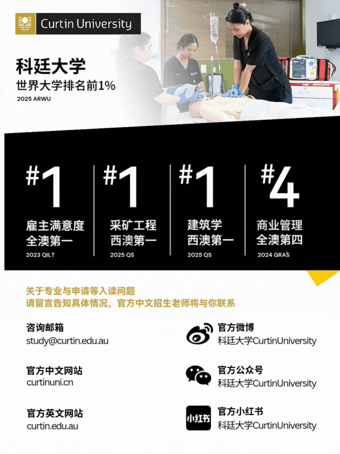 欢迎识别下方二维码,关注科廷大学视频号【科廷大学】。解锁更多校园实拍与学生故事,带你沉浸式了解科廷大学的学习与生活!