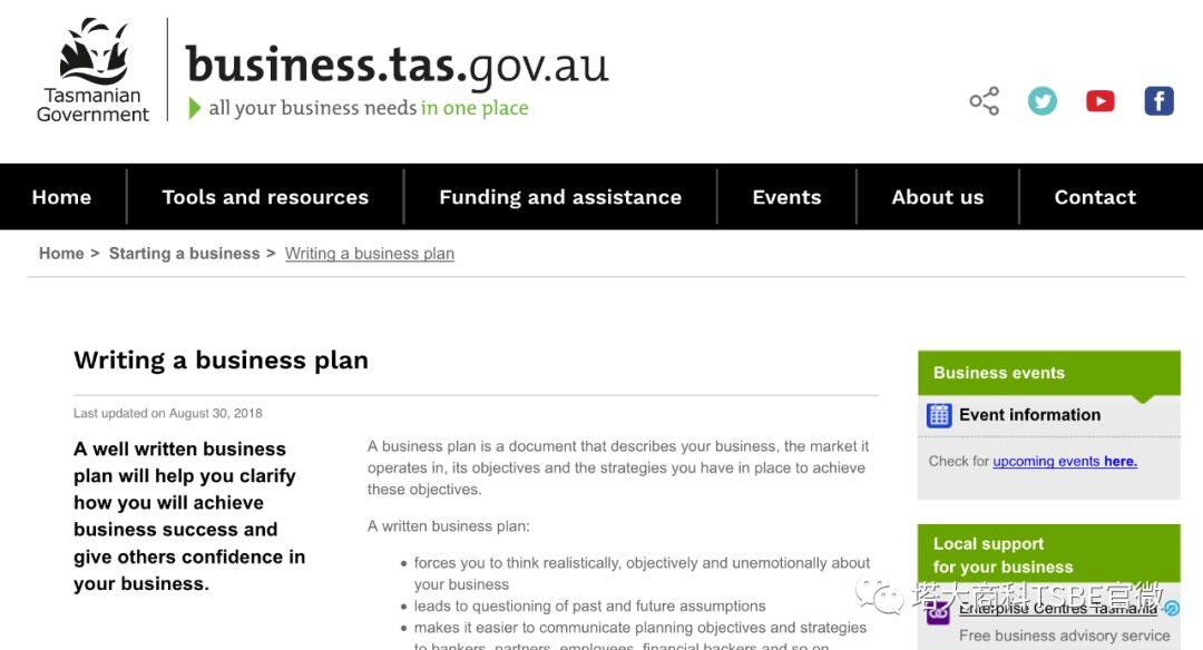 Business Tasmania提供商业计划书模板