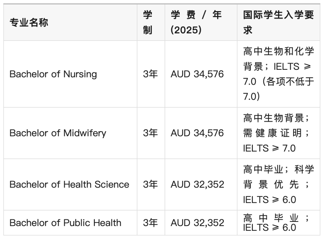 医疗健康类专业如护理、助产、语言治疗等:IELTS 总分 ≥ 7.0(各单项 ≥ 7.0)