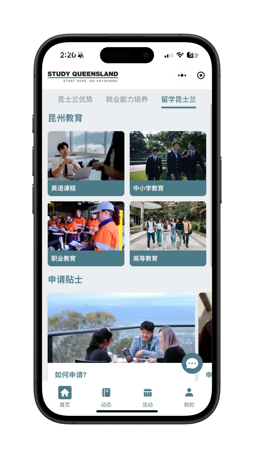 昆士兰留学小程序旨在为中国学生及国际教育与培训机构提供全方位支持服务,为多方营造联结的机会。