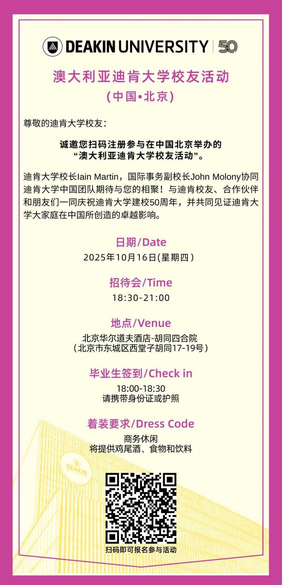 值此50周年校庆之际,这份凝聚着迪肯大学教育初心的特别邀约,等待每一位曾经陪伴迪肯大学走过一段时光的你。