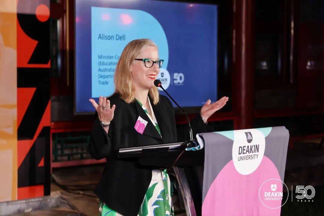 澳大利亚驻华使馆教育与研究部部长Allison Dell女士应邀出席并致辞,向迪肯大学建校50周年致以热烈祝贺。