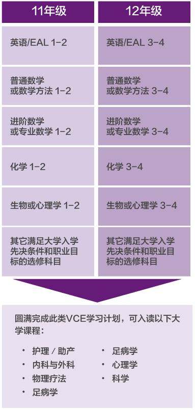 下面我们为大家介绍几族较受学生欢迎的VCE选课组合以供参考。圆满完成类似的VCE学习计划对日后申请大学的很多专业学科极有帮助。