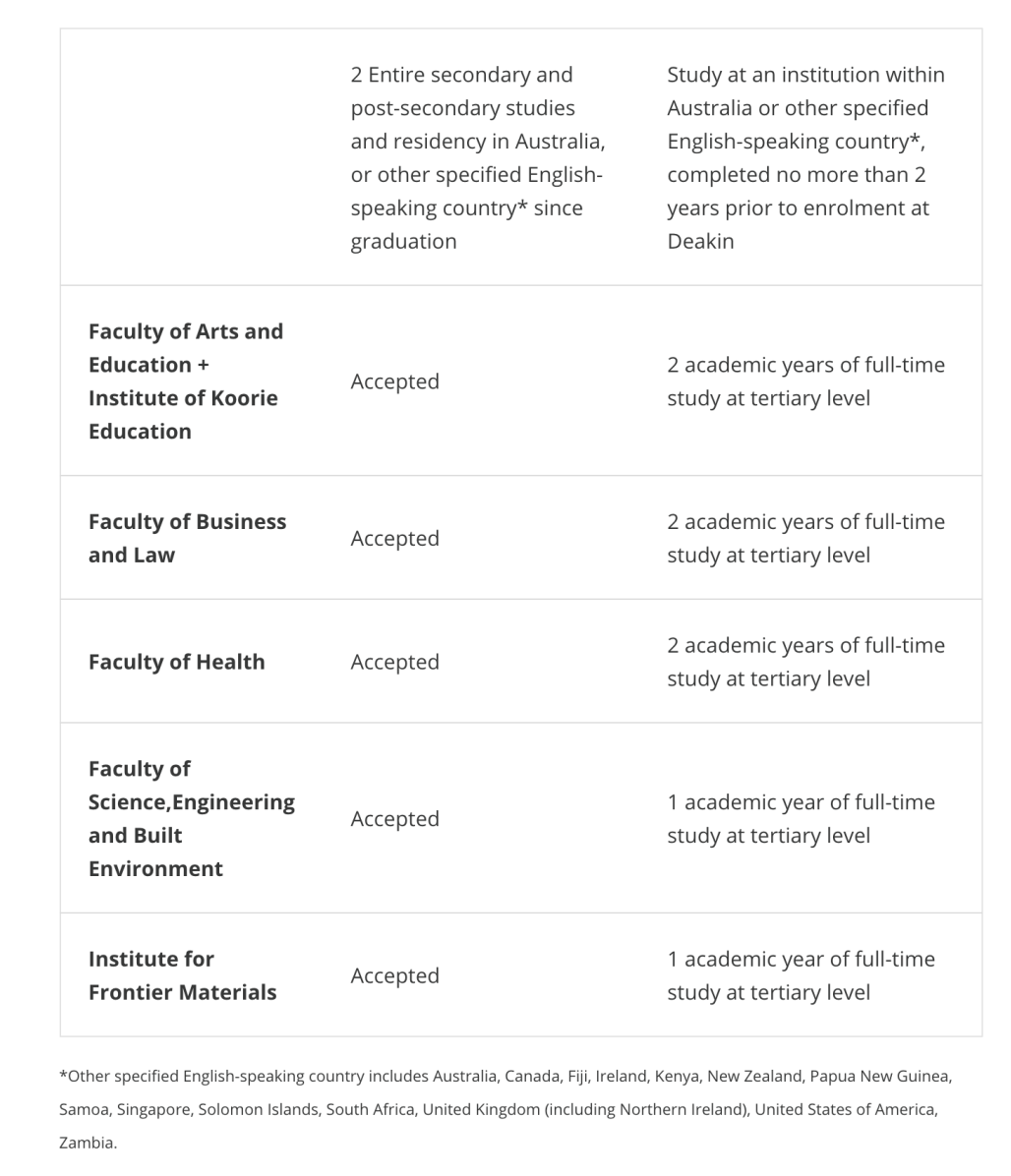 值得一提的是,如果英语成绩无法满足直入要求,可以通过迪肯大学语言中心(DUELI)课程学习,衔接入读研究型学位。