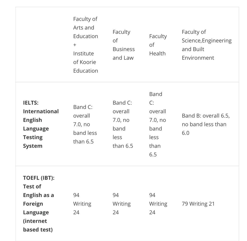 如果你的母语为非英语,或你用于申请迪肯大学研究型学位的学历资格材料为非英语国家授予,申请者则需提供额外的英语能力证明。