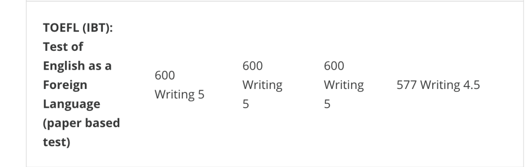 对于已经获得英语国家学历资格(完成时间未超过2年)的研究型学位申请者,英语成绩入学要求如下: