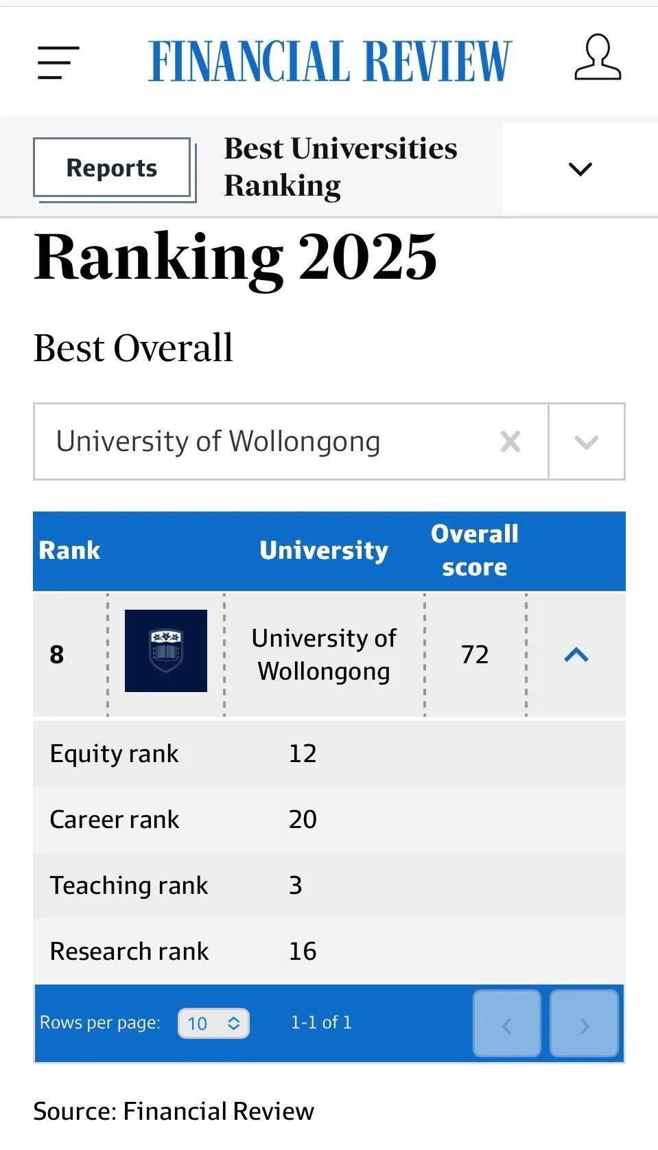 《澳大利亚金融评论》最佳大学排名从教学、研究、公平性和职业影响力四个关键指标对澳大利亚大学进行比较分析。在《澳大利亚金融评论》的其他评估维度中,沃隆港大学同样表现稳健,分别在公平性排名全澳第12位、科研排名第16位、职业影响力排名第20位。