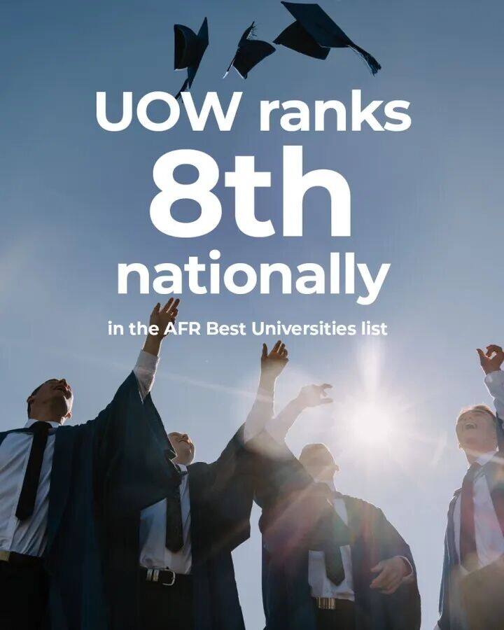 日前,《澳大利亚金融评论》Australia Financial Review (AFR) 公布了2025年全国最佳大学排名。沃隆港大学(UOW)在此次排名中表现卓越,在澳大利亚全国排名第8。其中在教学质量方面的表现尤为突出,排名全澳第3,彰显了沃隆港大学在以学生为中心,高质量教育领域中的全国领先地位。
