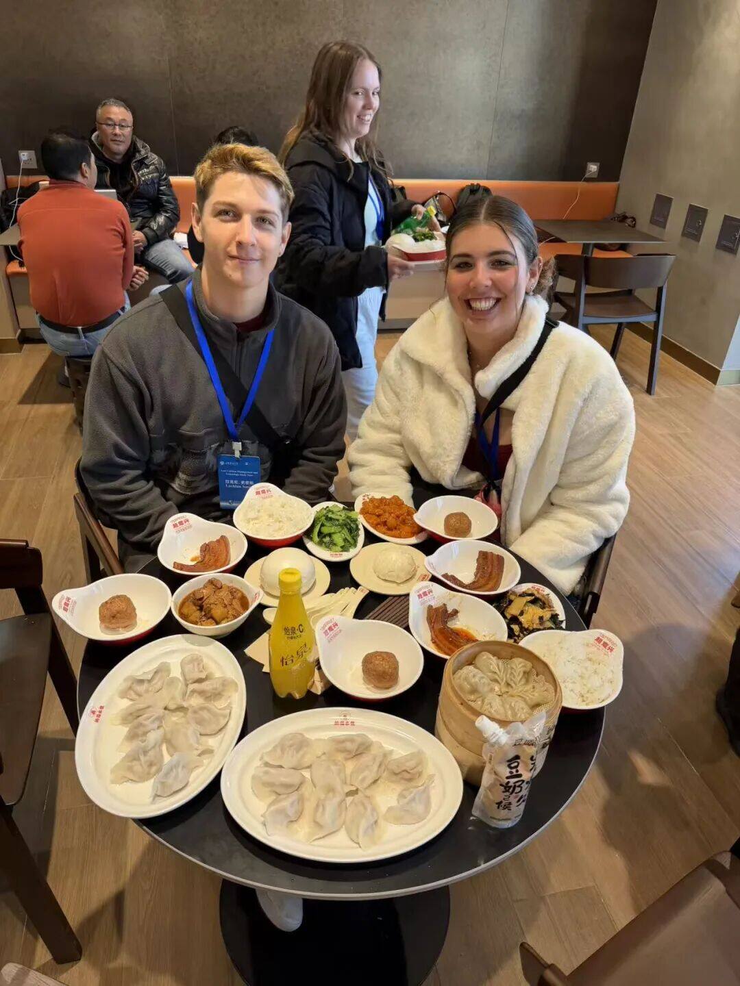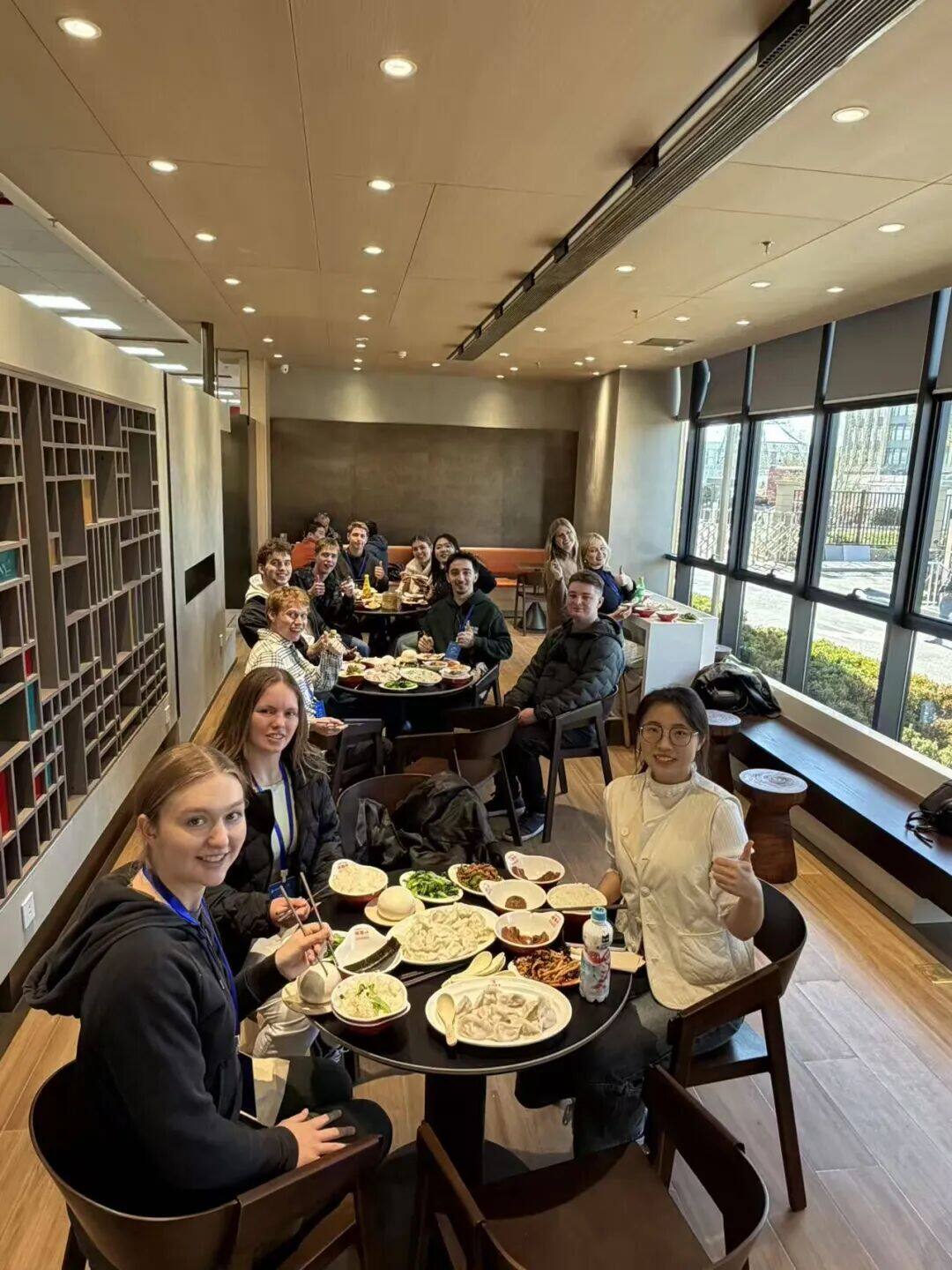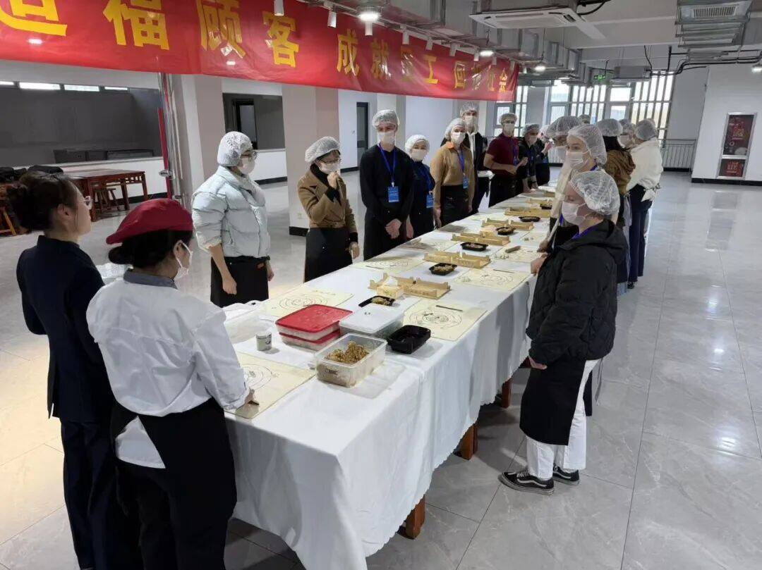 在研学互动环节,师生们在工作人员指导下体验了手工包饺子制作,现场欢声笑语不断。在品鉴环节,学生们品尝了企业招牌“把子肉”“四喜丸子”等经典鲁菜,充分感受山东饮食文化中“厚道实在、质朴真诚”的地域特征。
